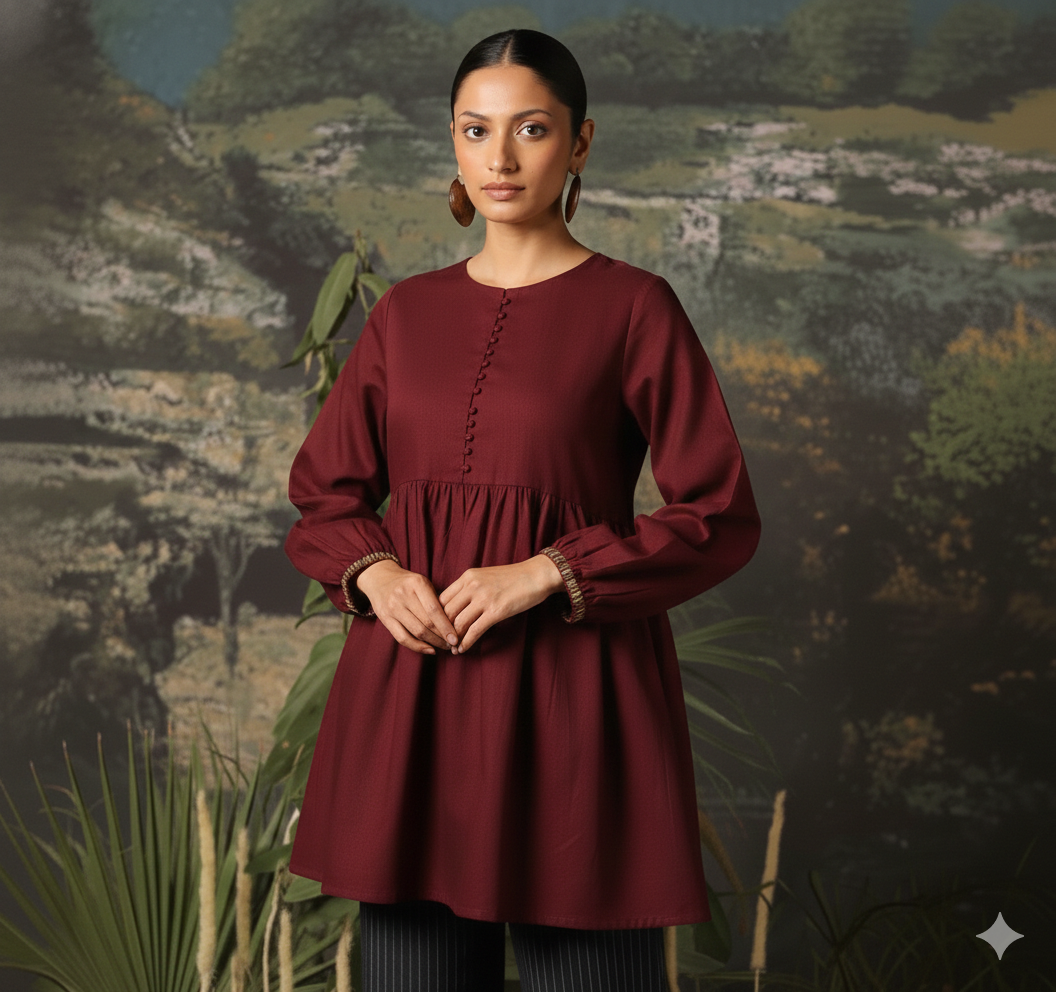 Beautifully stitched trendy peplum top with printed back.