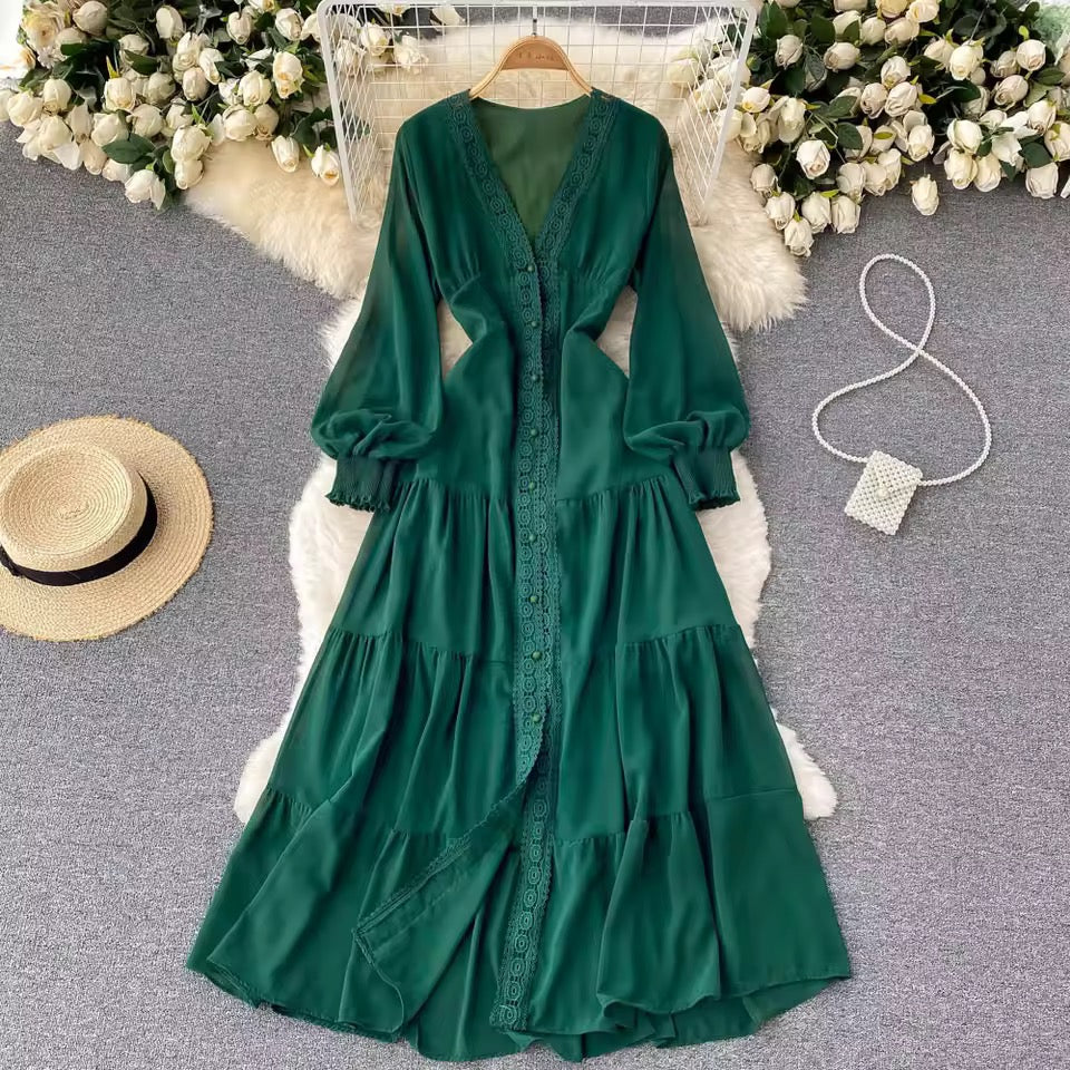 This finely stitched trendy georgette frock with intricate lace details with stylish cuts.