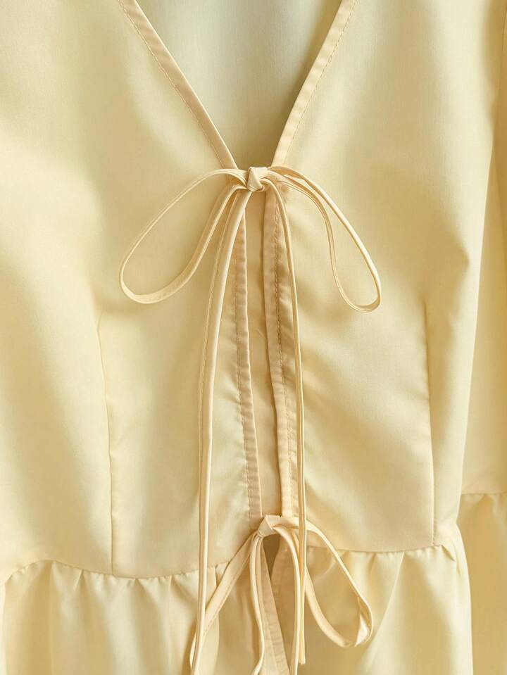 Details: beautiful neckline featuring bows on front giving cute vibe.