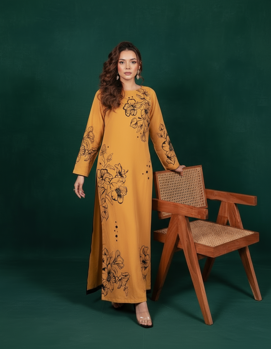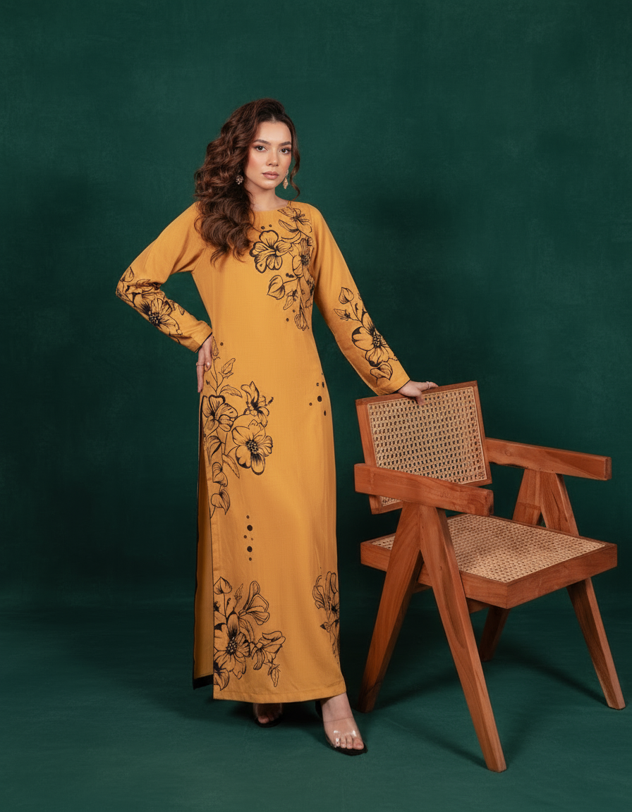 Stand out this season with our floral printed design featuring boat neck in mustard color.
