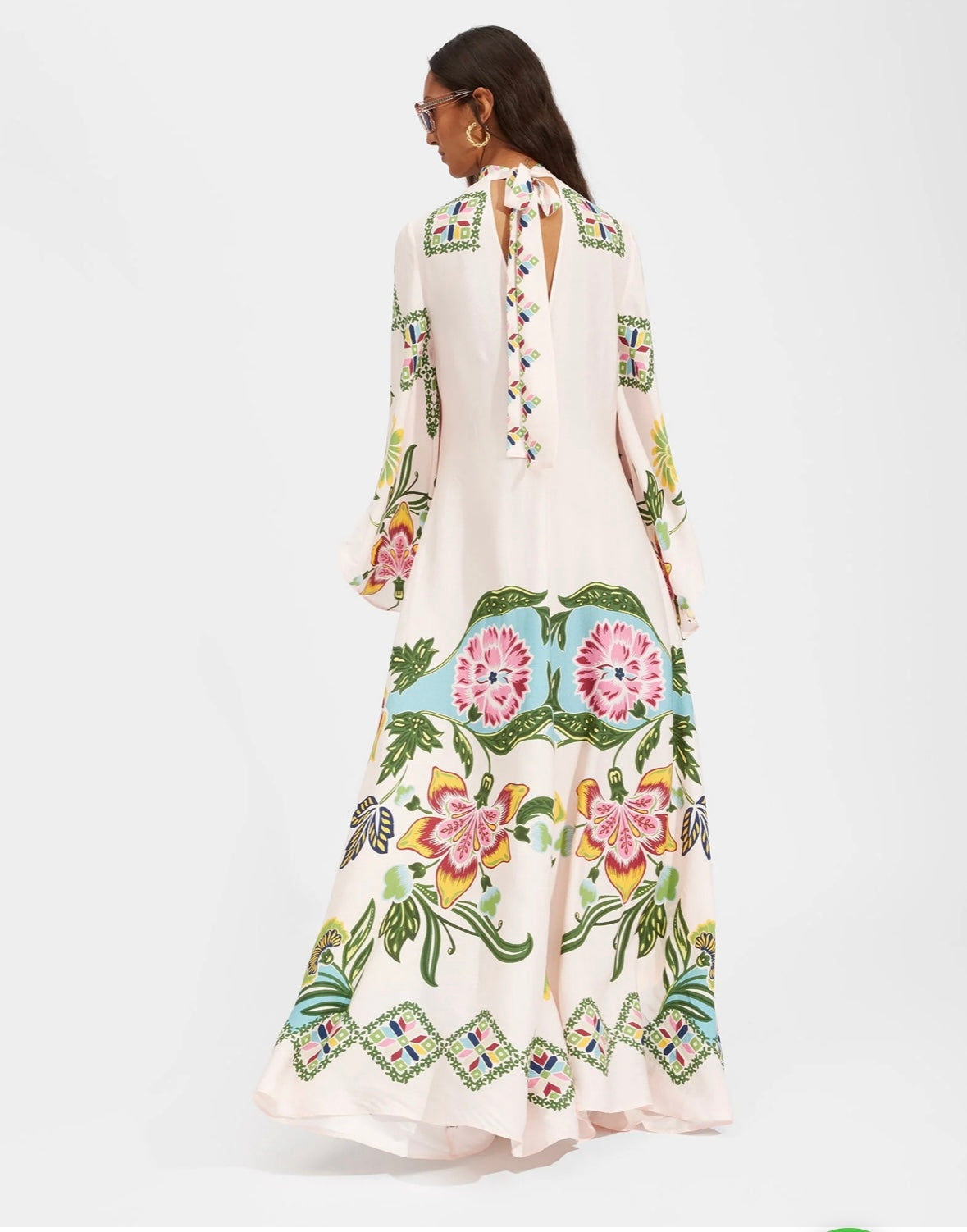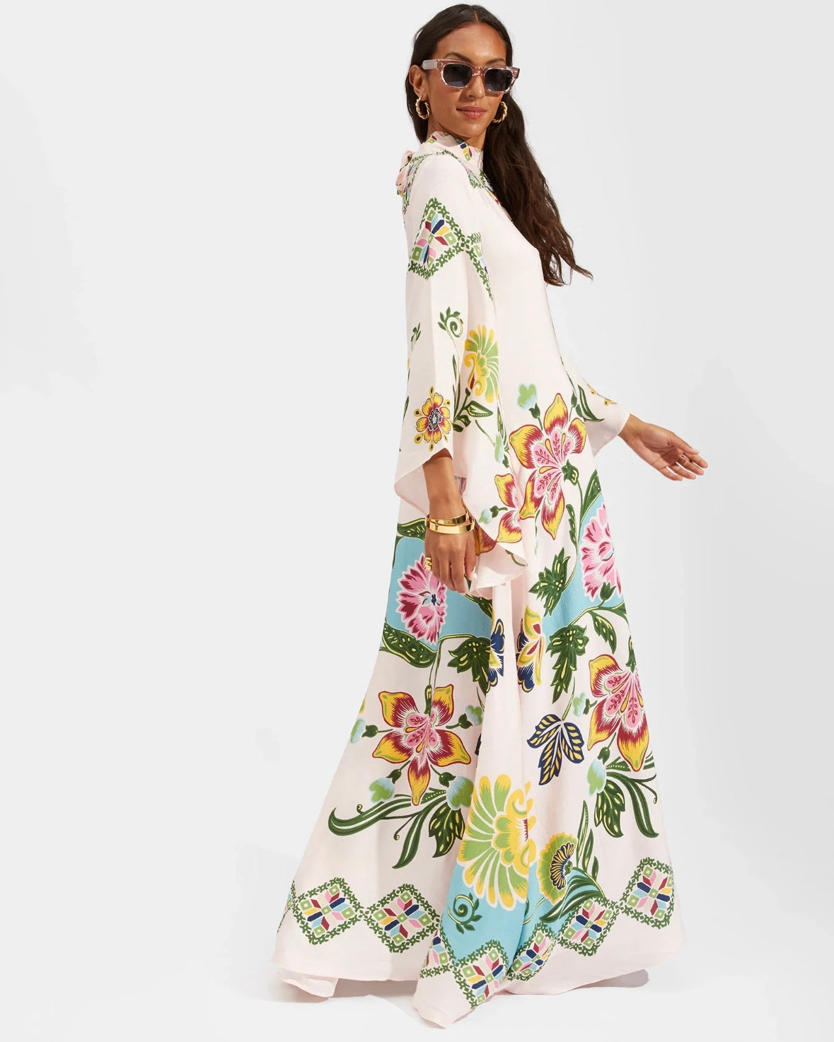 Beautiful stitched long shirt featuring elegant prints on whole with slits on sleeves that showcases beautiful complimenting color pop detailing.