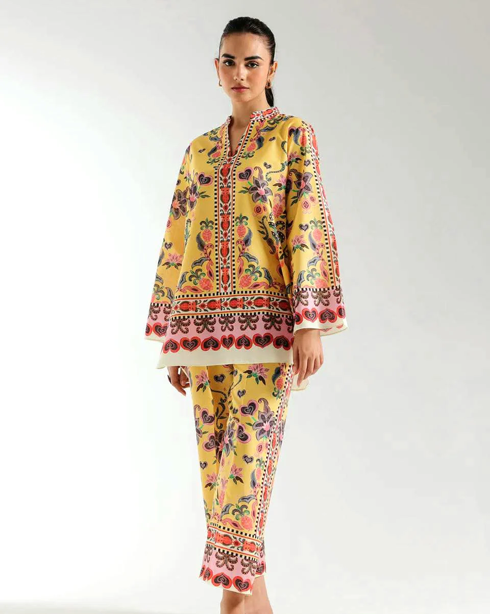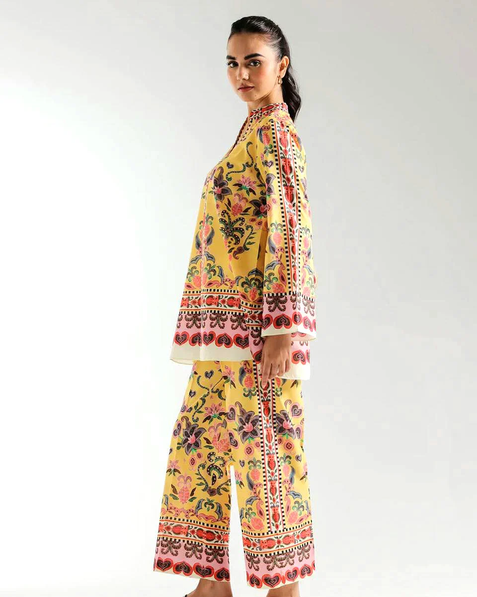 Beautiful stitched shirt and trouser featuring pop of colors in printing on back , pocket and sleeves cuffs.